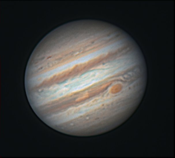 Beim großen roten Fleck in den Wolkenstrukturen des Jupiters, handelt es sich um ein gewaltiges Sturmsystem, dass zumindest schon seit mehreren hundert Jahren existiert. Er ist mit etwa 26.000 x 13.000 km so groß, dass die Erde 2x hinein passen würde.