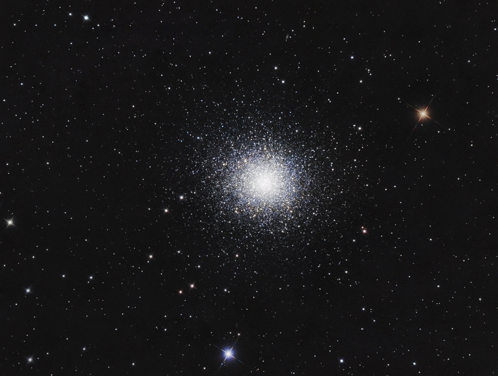 M13 ist ein Kugelsternhaufen, der sich etwa 23.000 Lichtjahre von der Sonne entfernt im Sternbild Herkules befindet.