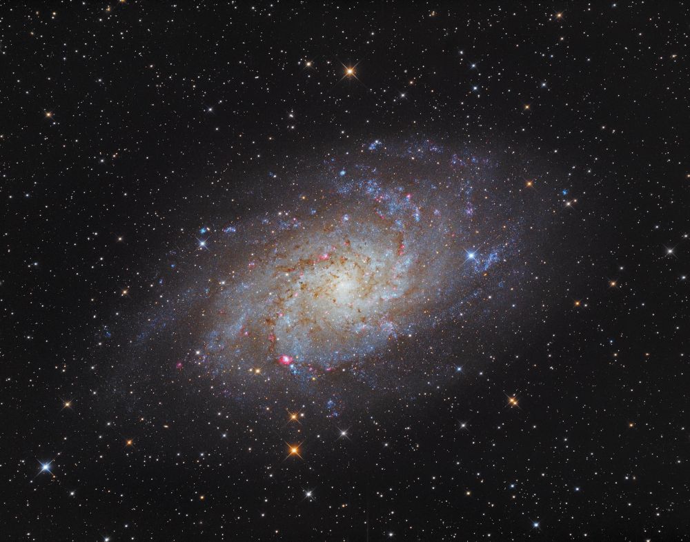 Die Triangulum-Galaxie (M33) erscheint nach dem Andromeda Nebel am Himmel als größte und hellste Galaxie.