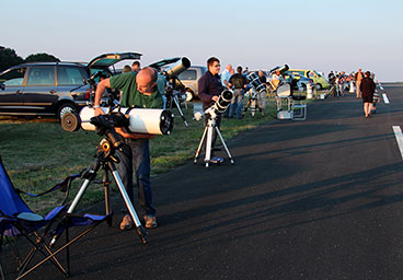 Hinweis für Amateurastronomen: Wir laden herzlich alle Sternfreunde ein, sich mit ihren Fernrohren entlang der Startbahn aufzustellen. Von Klein- bis Großgerät – jeder ist willkommen, zu beobachten, zu fotografieren und den Besuchern einen Blick auf ins Universum zu ermöglichen.